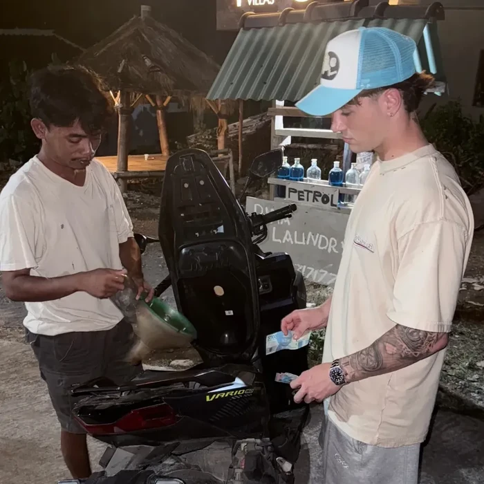 Tak hanya Ivan yang membeli bensin eceran. Pembalap Moto3, Eddie O’Shea juga kedapatan tengah mengisi bensin eceran. Sementara itu aku @motogplombok juga membagikan beberapa aktivitas lainnya para pembalap.
