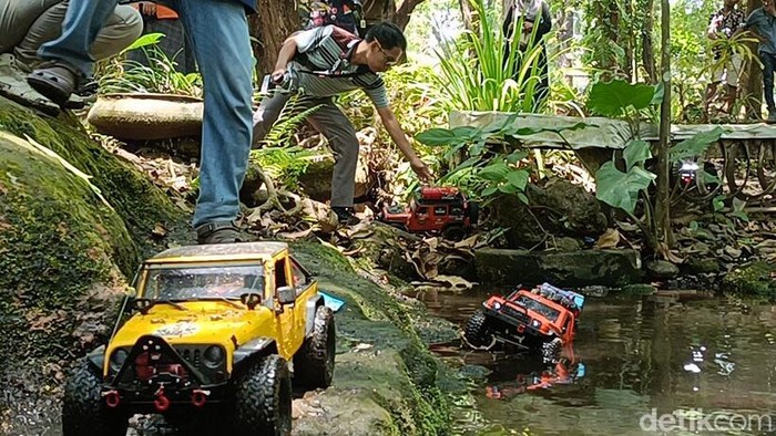 Beberapa unit bahkan dilengkapi stiker, lampu kabut, dan detail yang mirip mobil sungguhan. Setelah persiapan, para anggota komunitas langsung mengendalikan mobil RC mereka melintasi hutan, bebatuan terjal, hingga jalur sungai yang berlumpur.