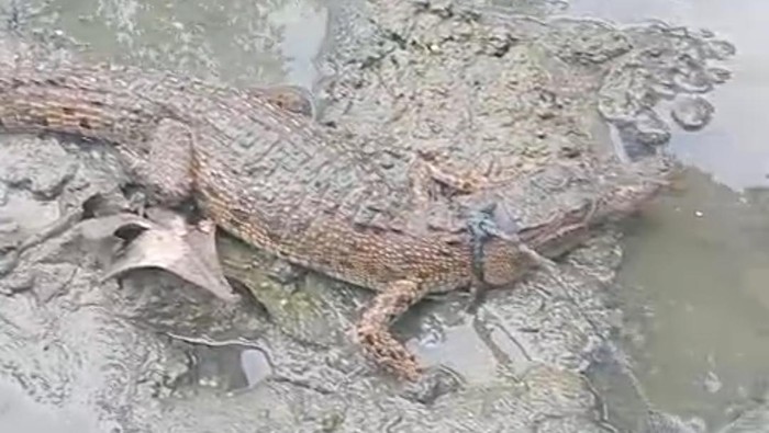Video penangkapan buaya itu pun viral di media sosial (medsos). Dalam video berdurasi 23 info itu terlihat ada seekor reptil yang diikat di bagian lehernya dengan seutas tali nilon. Lokasi buaya yang masih anak-anak itu terlihat berlumpur.