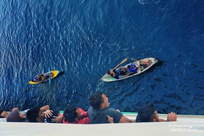 Di antara riak ombak, puluhan anak dengan perahu kecil khas yang disebut koli-koli tampak sigap bermanuver. Teriakan ‘Om, lempar Om’ menggema, bersahutan dengan deru mesin kapal.