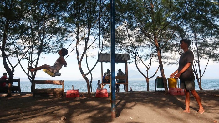 Jakarta – Wisatawan menikmati ayunan di tepi Pantai Pulau Santen, Banyuwangi, seiring kontribusi sektor pariwisata yang terus meningkat dalam PDB nasional.