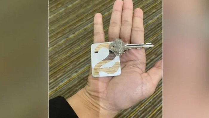 Namun, kunci itu polos, tidak ada logo hotel atau penanda khusus lain yang jadi mewakili hotel. Di kunci itu cuma ada gantungan dengan menunjukkan bahwa dia menginap di kamar nomor dua.